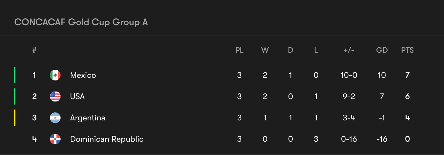 Right now, Argentina and Puerto Rico will advance to the Quarterfinals. While Paraguay also sits on three points, the Islanders' goal difference of 0 is stronger than South Americans' -3.