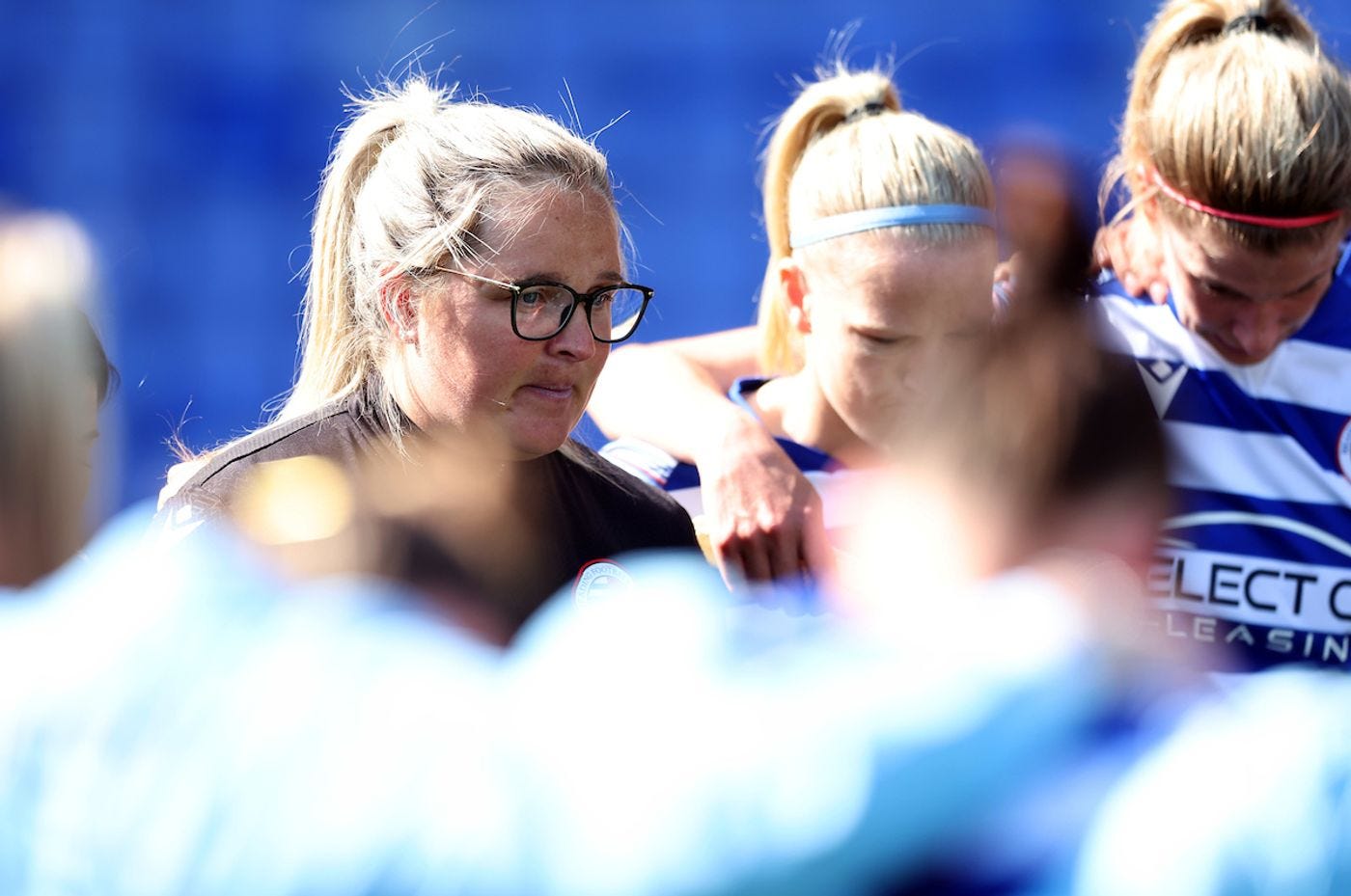 Kelly Cousins leading the huddle for Reading FC in her final season with the team | Courtesy of Reading FC