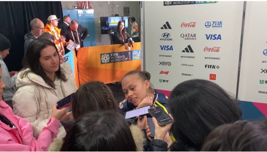 At the 2023 World Cup, one of the longest mixed zones sessions I saw of any player at the entire tournament was Ana María Guzmán. The 18-year-old Colombian must have spent 20 minutes or more with media members from around the globe after her country lost 2-1 to England in the Quarterfinals.