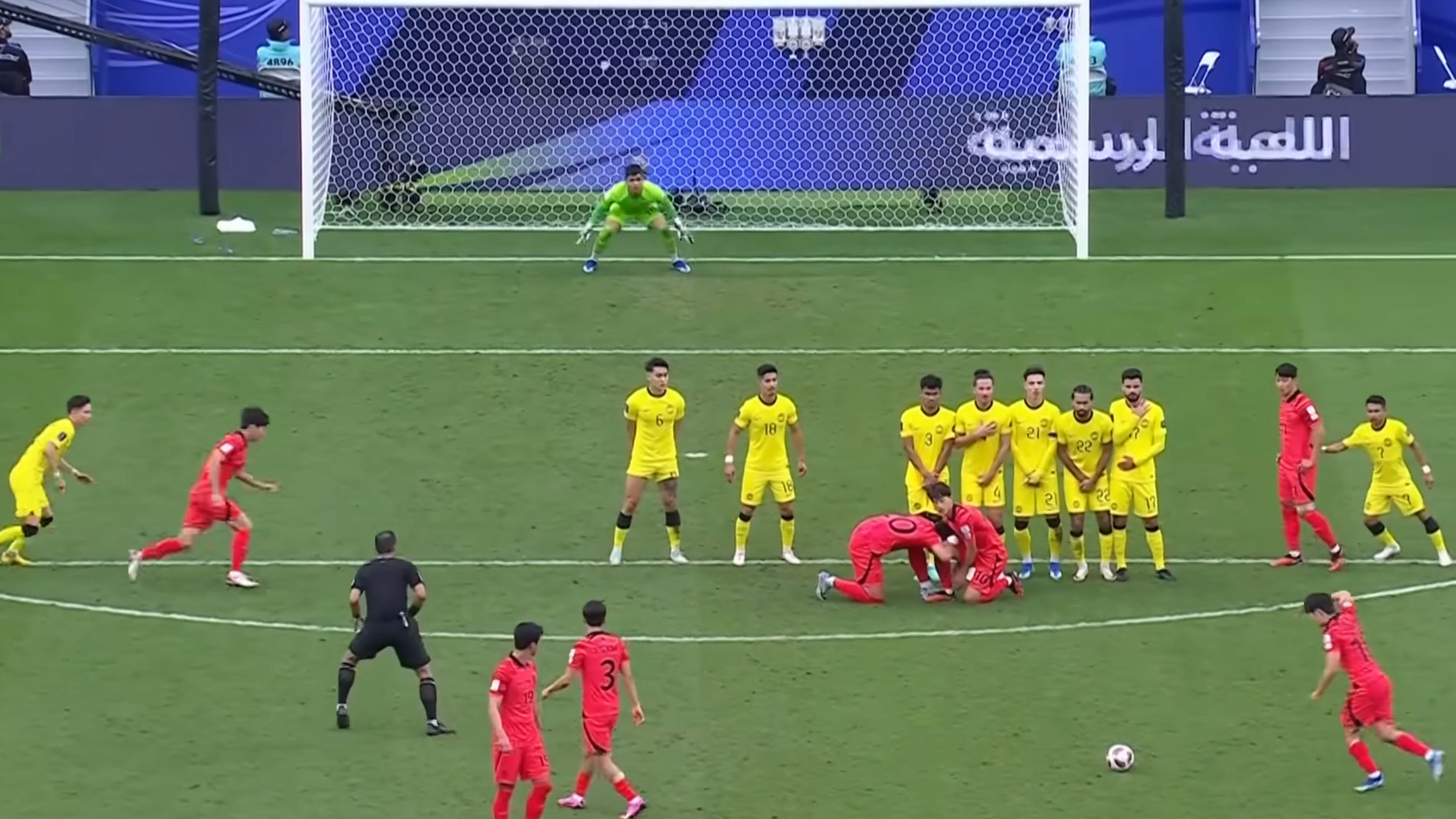 But what makes South Korea’s two-person mini wall so ingenious is how it solely focuses on the sight of the ball. It doesn’t commit too many extra bodies. This is especially helpful on a wider free kick, when a cross is a viable option for creating a good chance.