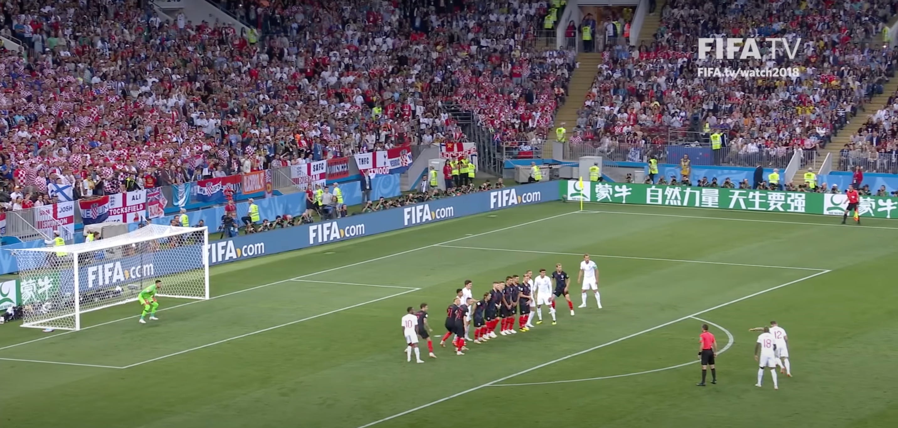 Sometimes, as seen in Kieran Trippier’s free-kick against Croatia, almost every player on the pitch was lined up in the wall to make the connection and trajectory of the ball as hard to predict as possible.