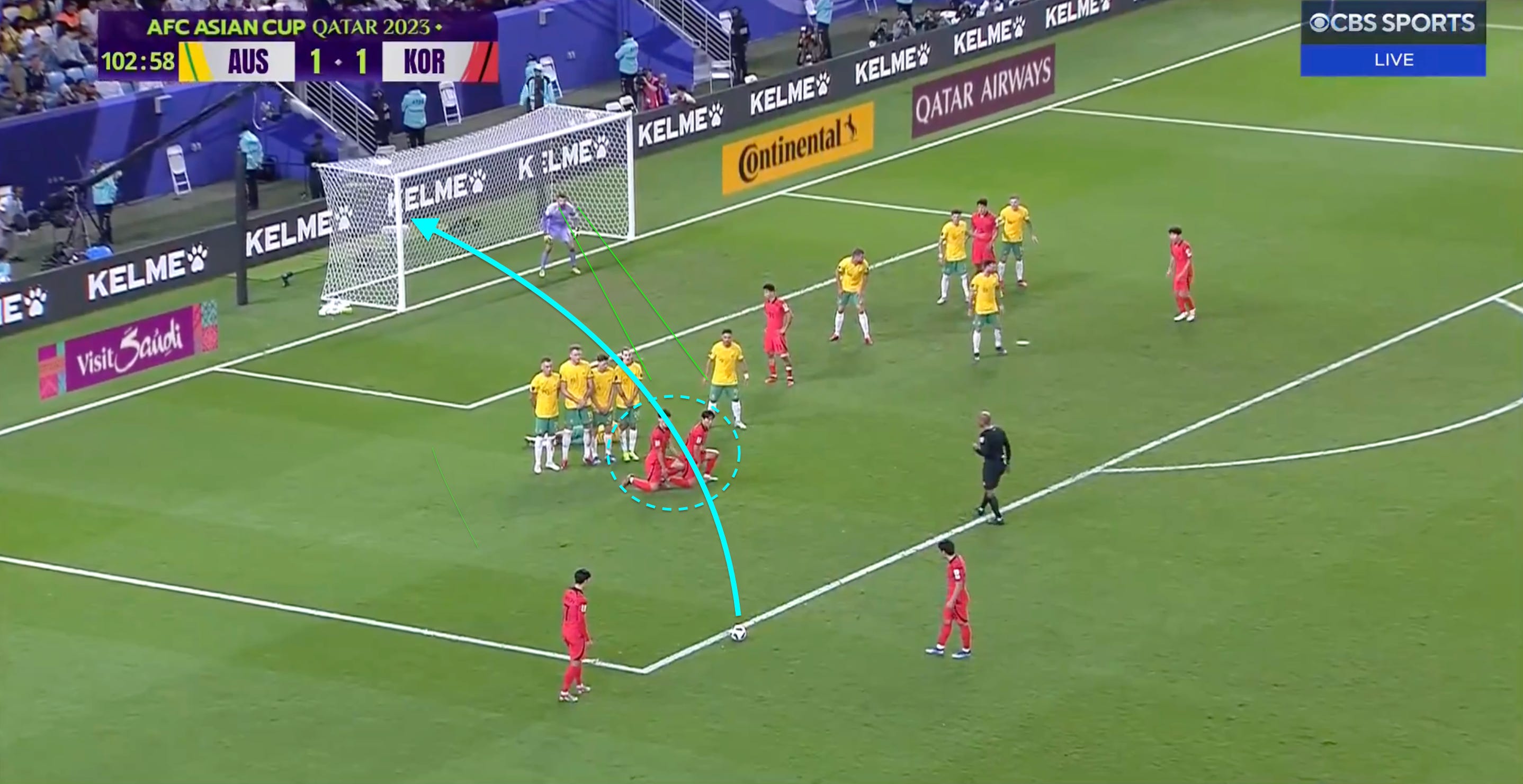 What Lee and Yang were able to do on this free kick was prevent Aussie keeper Matt Ryan from seeing the ball. Without knowing exactly when the ball was hit, there are several bonus milliseconds of uncertainty.
